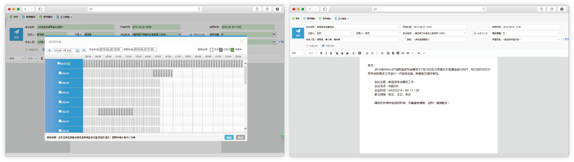 完成办公的辅助管理,包括车辆、办公用品、设备、图书借阅管理和会议室申请、审批。 以提升会议效率为目标, 加强会议过程管控,降低开会成本,图形化展现会议室申请情况