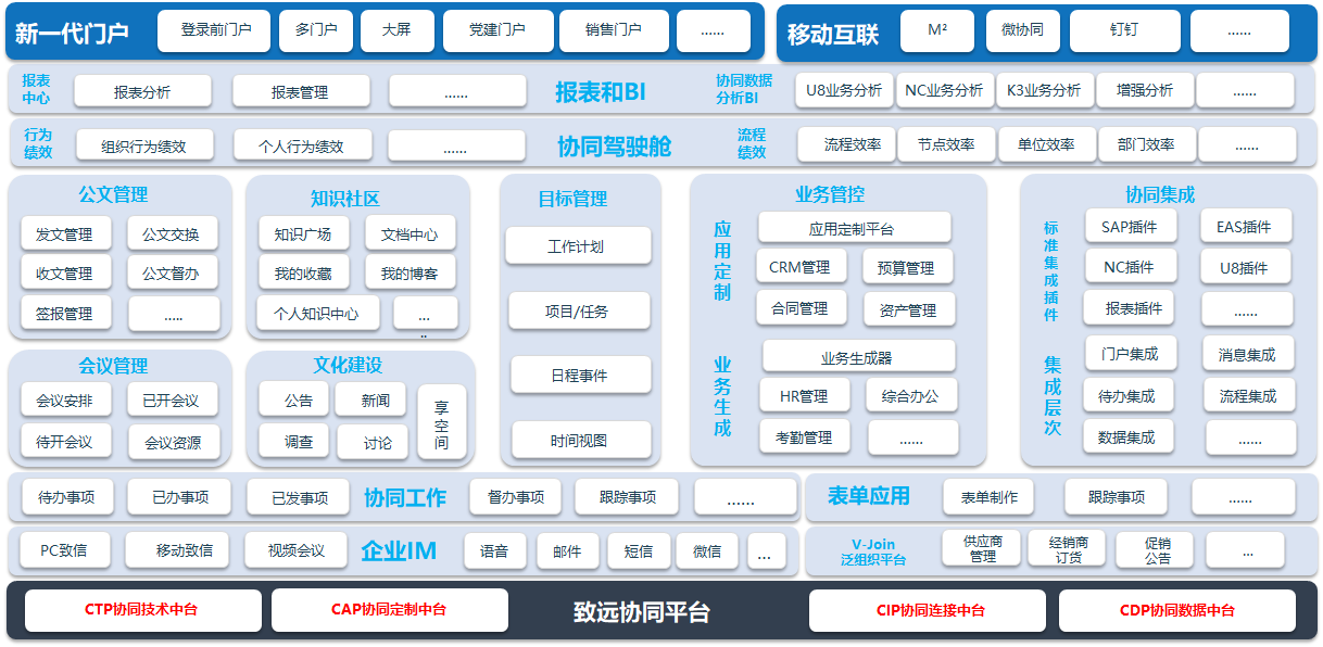 致远协同管理软件,是面向中型、大型、集团型组织的数字化协同运营中台。