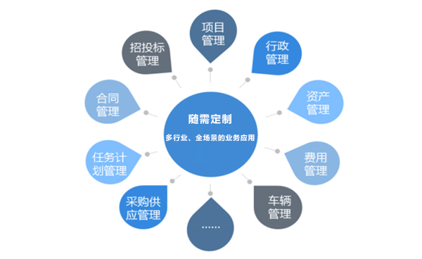 预置人事管理、合同管理、费用管理、客户管理、行政管理、资产管理、任务管理等业务应用包, 既可实现即装即用,又可根据企业的业务需求,随需定制