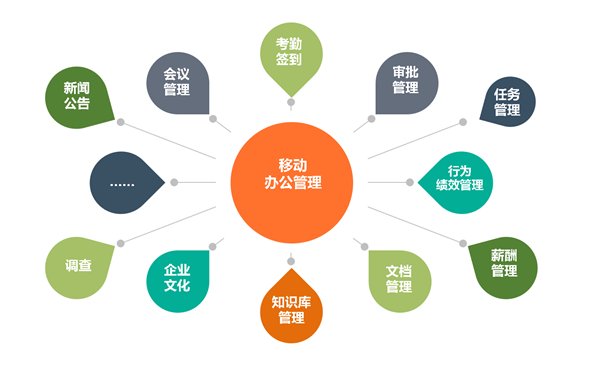 移动协同管理覆盖企业日常业务开展的方方面面,形成相对独立并又相互关联的移动应用场景