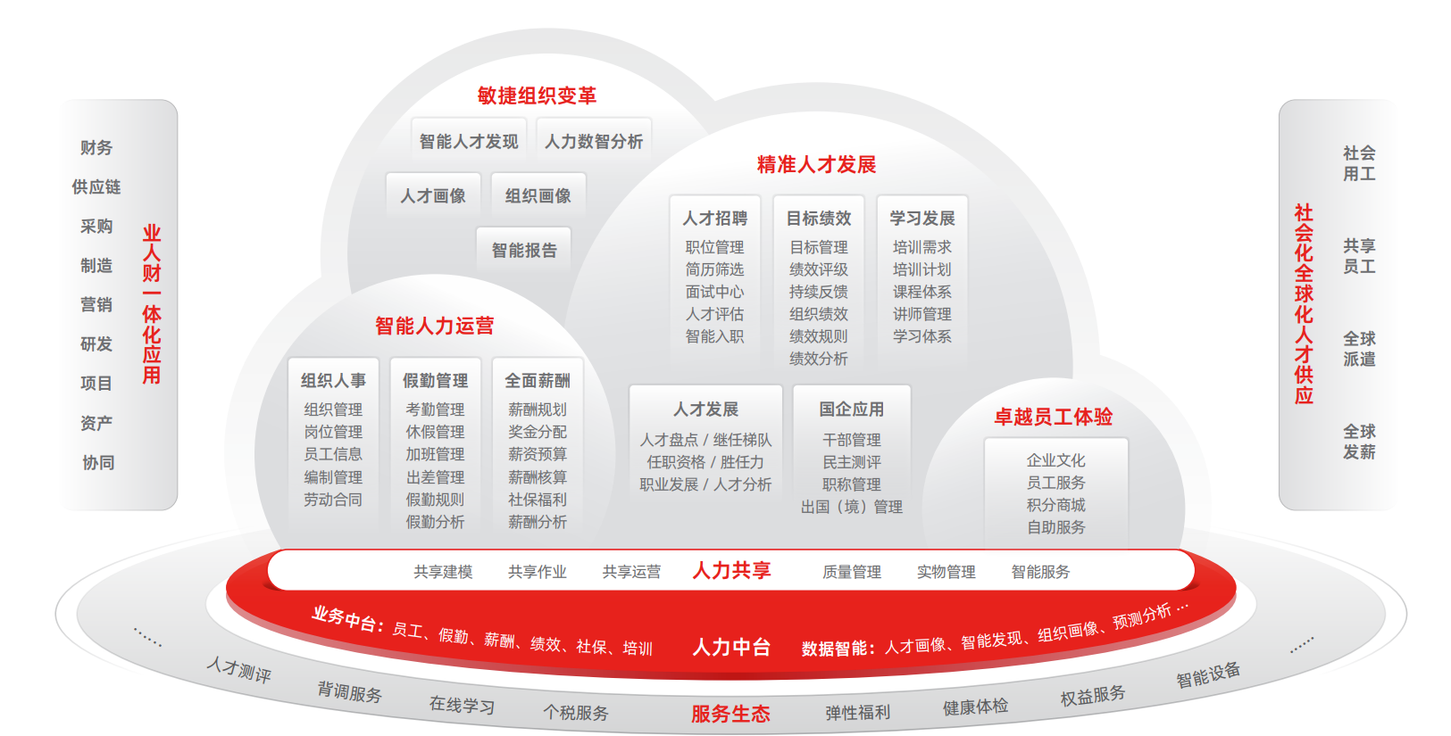 用友BIP数智人力,涵盖全球化人才体系构建、社会化用工服务、数智化人才培养等业务,助力客户构建全球化、社会化、智能化、主题化的完整数智人力解决方案。
